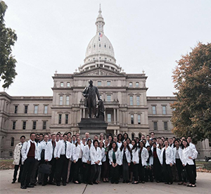 More than 150 medical students from five medical schools in Michigan met with lawmakers on Tuesday to urge support for more graduate medical education (GME) funding in the state budget, scope of practice concerns, and other issues related to physician supply and availability. Schools represented included: Central Michigan University College of Medicine, Michigan State University College of Human Medicine, University of Michigan Medical School, Wayne State University School of Medicine, and Western Michigan University Homer Stryker, MD, School of Medicine.