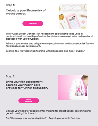 We have also provided researched evidence-based algorithms that guide clinicians on how to appropriately risk assess a patient and screen them for breast cancer according to their risk assessment score and density.
