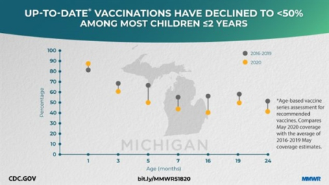 On May 18, CDC published an article in Morbidity and Mortality Weekly Report (MMWR) showing Michigan’s decline in pediatric immunization coverage during the COVID-19 pandemic according to data from the Michigan Care Improvement Registry (MCIR).