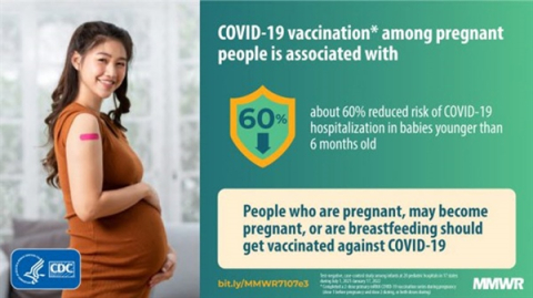 COVID-19 vaccination during pregnancy is recommended to prevent severe illness and death in pregnant women. Infants are at risk for COVID-19–associated complications, including respiratory failure and other life-threatening complications.