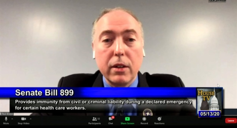Paul D. Bozyk, MD (Oakland), member of the Michigan State Medical Society (MSMS) Board of Directors, and MSMS Legal Counsel, Kathleen Westfall, JD, testified on behalf of MSMS before the House Committee on Judiciary on May 13, 2020, in support of Senate Bill 899, introduced by Senator Michael MacDonald (R-Macomb Township). This legislation, which seeks to codify and clarify immunity protection for health care professionals acting in response to the current novel coronavirus (COVID-19) pandemic, is currently under debate by the Michigan Legislature. Your voice is needed to ensure the Legislature understands the importance of protecting physicians from liability claims arising from the COVID-19 response.
